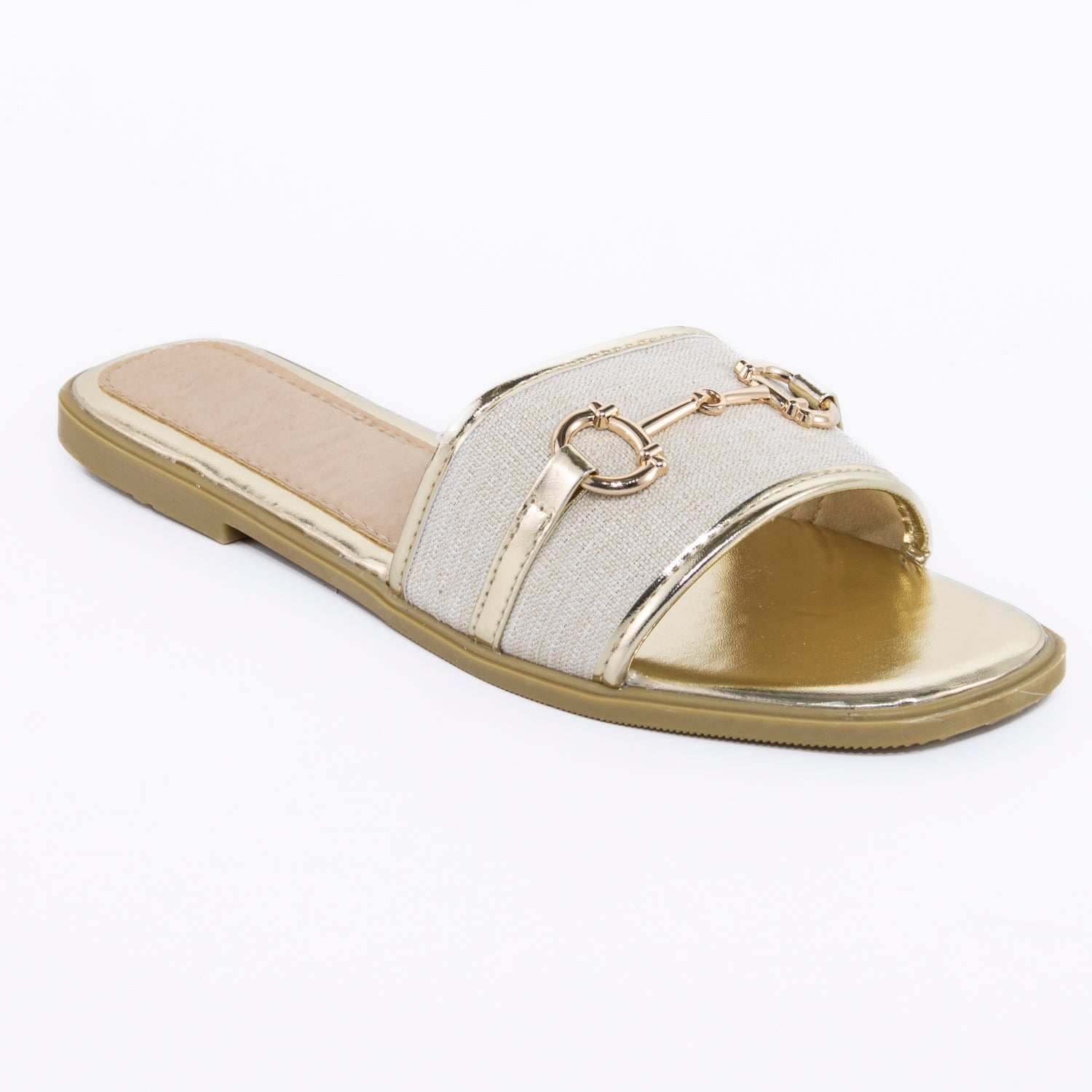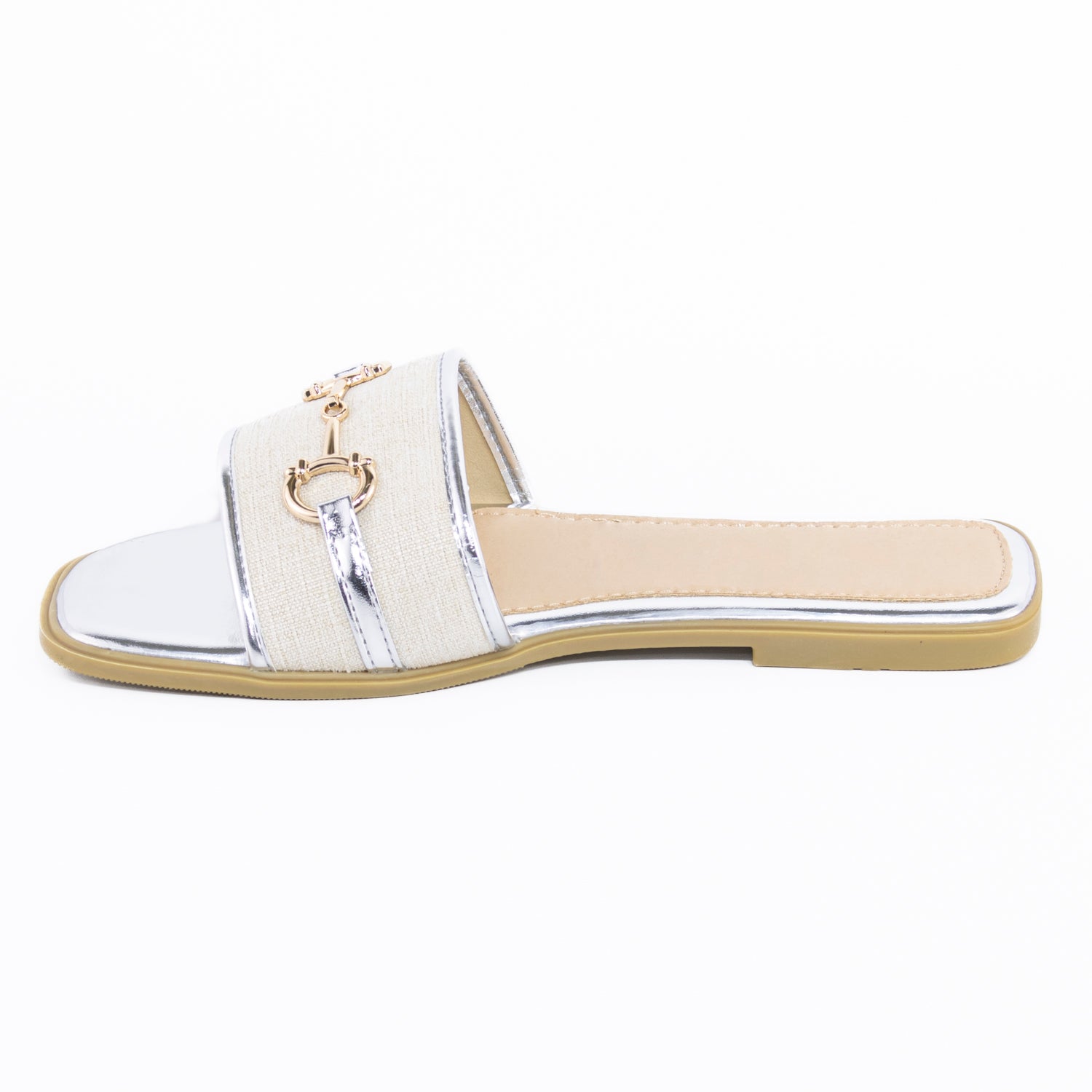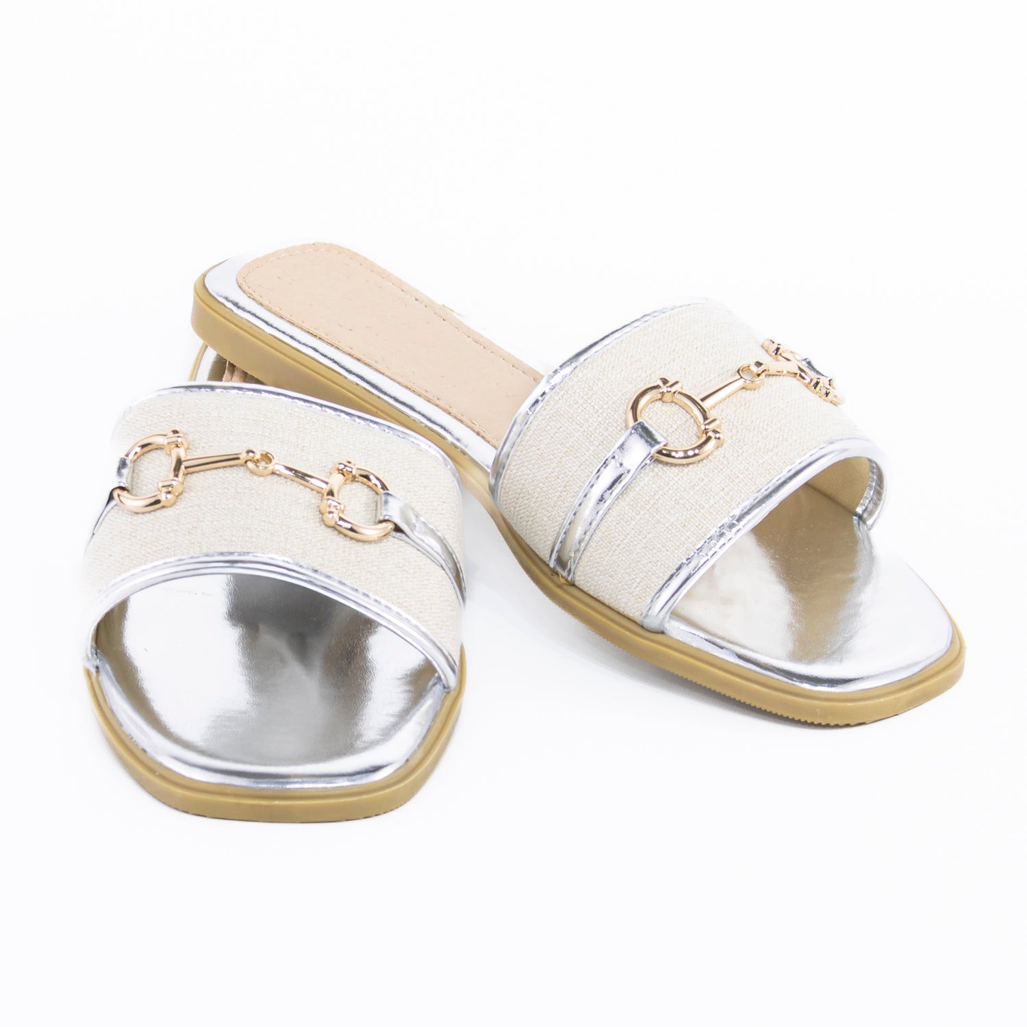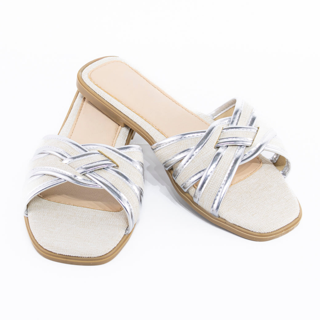 Diseño versátil y moderno para un estilo casual con un toque sofisticado. Esta sandalia plana destaca por su aplicación metálica en el empeine, que aporta un detalle elegante y actual. Confeccionada en materiales livianos y resistentes, ofrece comodidad durante todo el día sin perder estilo. Su suela flexible y plantilla suave la convierten en una opción perfecta para el uso diario o para complementar looks relajados con un acento chic. Ideal para combinar con jeans, vestidos fluidos o conjuntos veraniegos, esta sandalia será tu aliada en los días cálidos.
