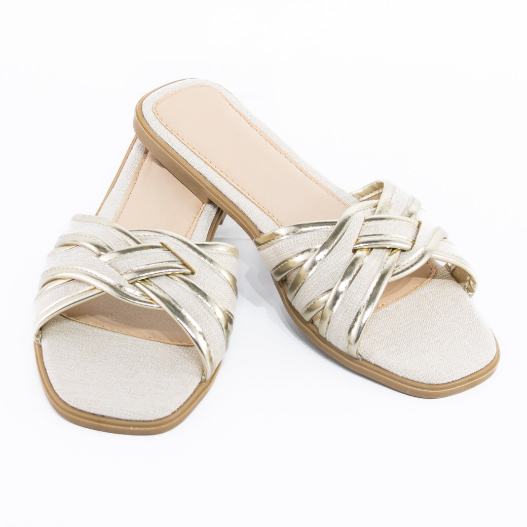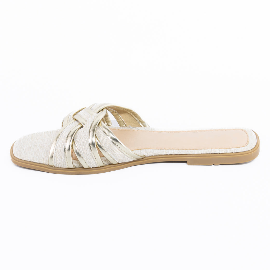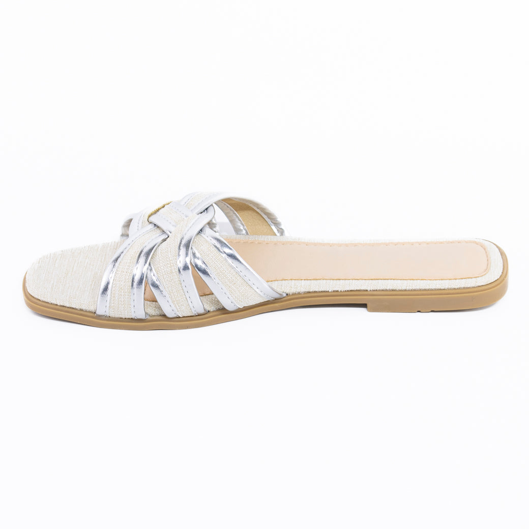 Diseño femenino y sofisticado para brillar en cada paso. Esta sandalia plana presenta tiras entrelazadas decoradas con strass que aportan un toque de brillo sutil y elegante, ideal para elevar cualquier look casual o semi-formal. Su estructura liviana y la plantilla acolchada garantizan máxima comodidad durante el día, mientras que el detalle entrelazado abraza el pie con suavidad y firmeza. Perfecta para ocasiones especiales en climas cálidos, o para sumar glamour a tus outfits diarios sin necesidad de tacón. Combínala con vestidos, faldas o pantalones fluidos para un estilo chic y relajado.
