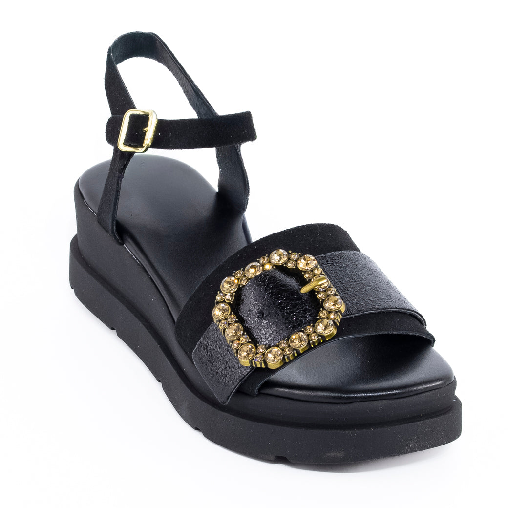 Elegancia y detalle en cada paso con esta sandalia tipo reno, adornada con una delicada hebilla decorada con strass que aporta un brillo sutil y sofisticado. Su diseño clásico se combina con un toque moderno, ideal para quienes buscan estilo sin renunciar a la comodidad. Confeccionada en materiales de alta calidad, ofrece un ajuste seguro gracias a su hebilla regulable. Perfecta para complementar tanto looks casuales como semi-formales, aportando un toque de glamour discreto. Una opción versátil y chic para tus días y noches, que no puede faltar en tu colección de calzado.